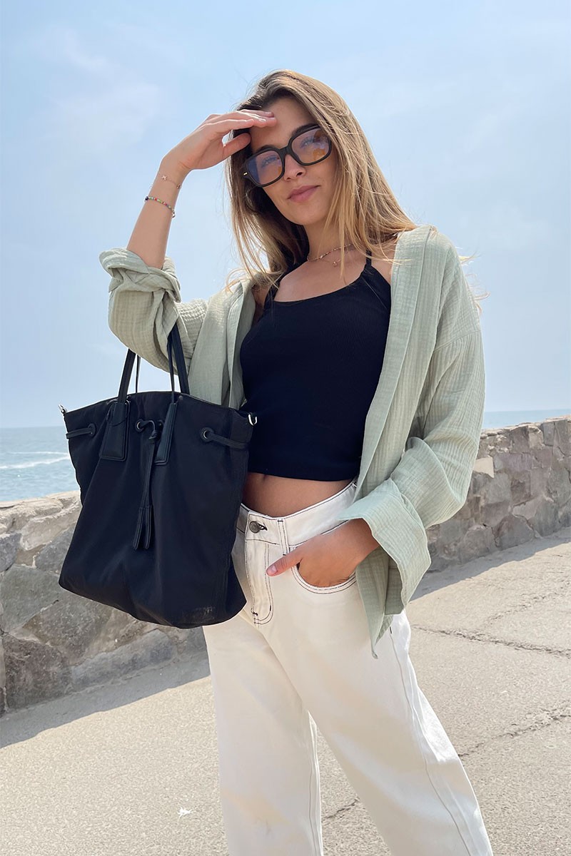 La modelo mide 1.73cm y usa talla S.