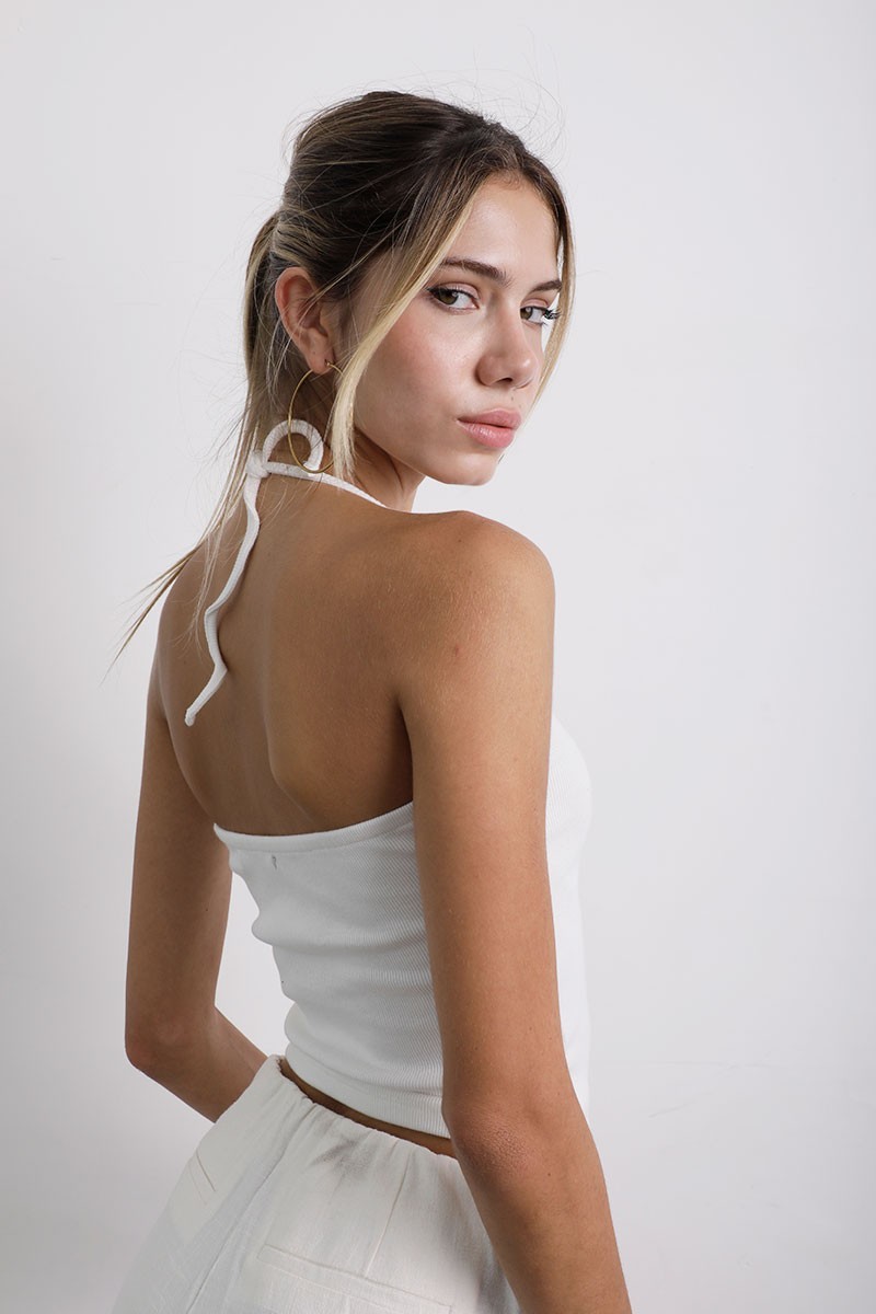 Top halter de algodón Rib