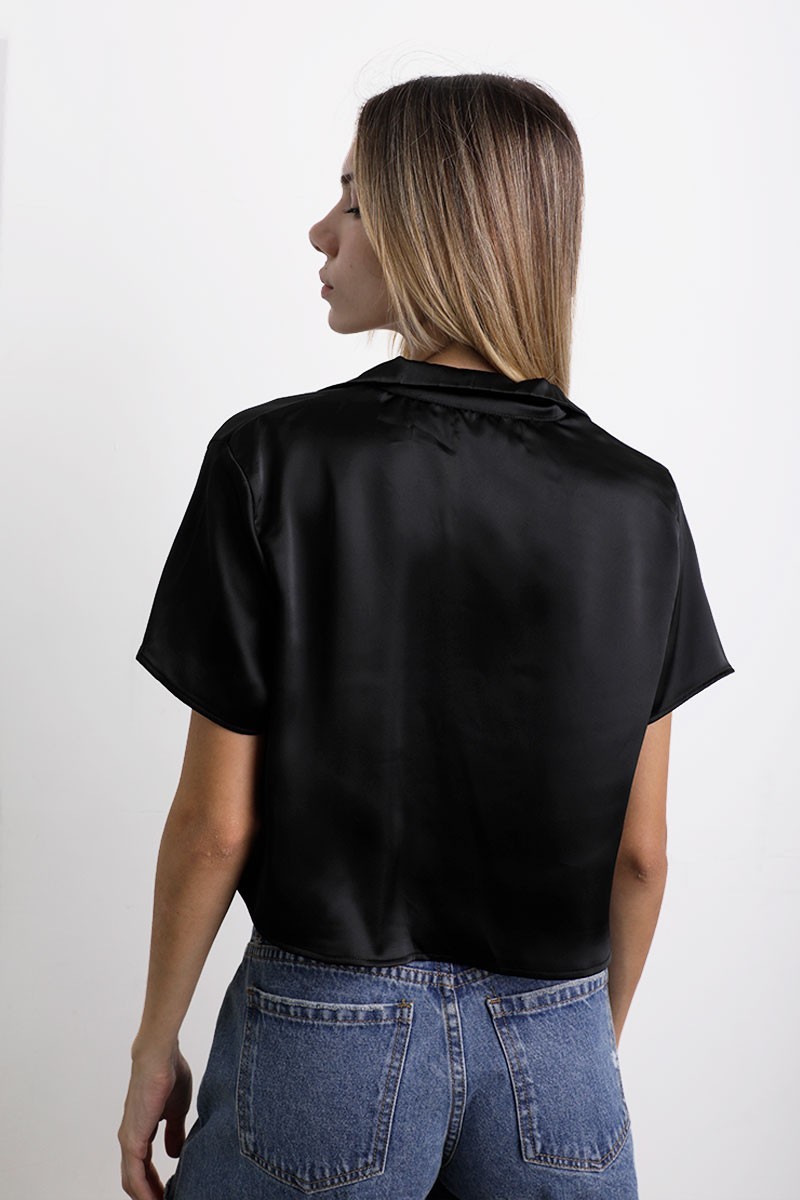 Blusa crope con cierre de 2 botones invisibles en delantero.