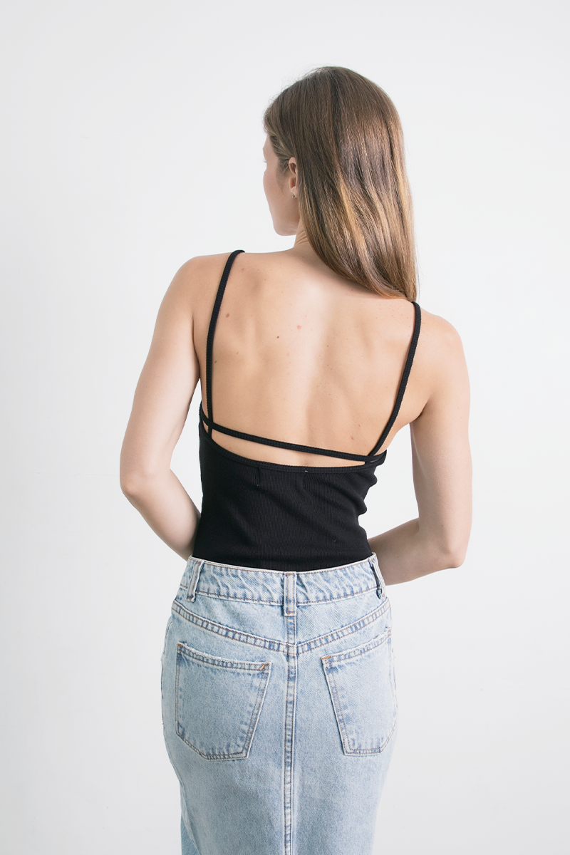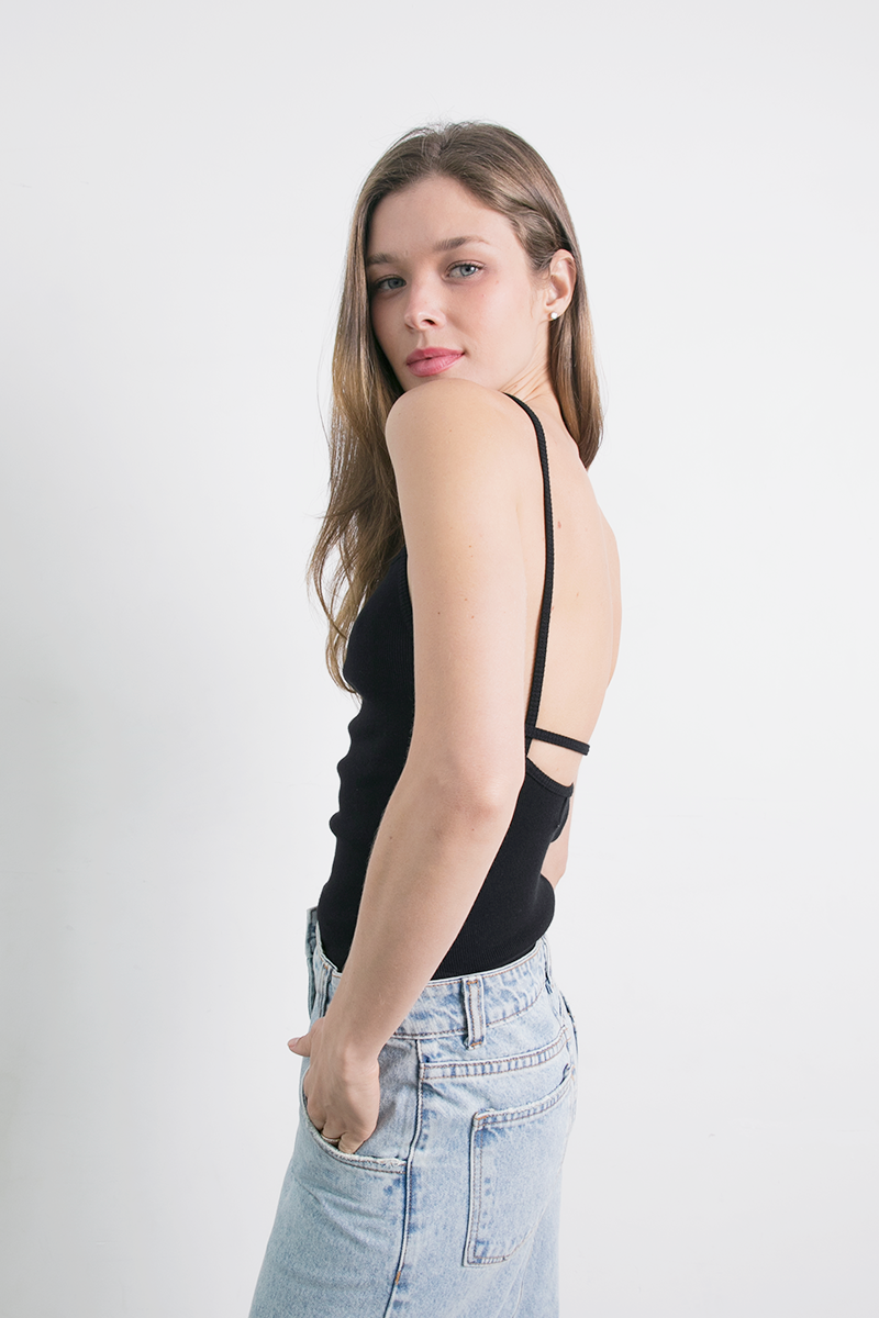 El Body Charlotte presenta un diseño elegante y favorecedor que se ajusta al cuerpo, realzando las curvas de forma sutil y atractiva. La parte de la espalda tiene una abertura con una tira central que agrega un toque de sensualidad y elegancia.